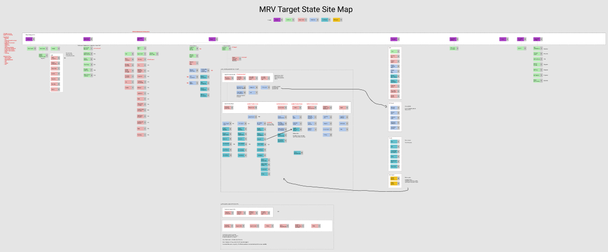 I spent a lot of my time building out the target state in Figma and developing the Figma file that would display the target state’s full-page templates. I also spent time updating the MRV application site map, so I could paint a picture of where the improvements would be occurring and who would be responsible for shipping the target state design patterns.