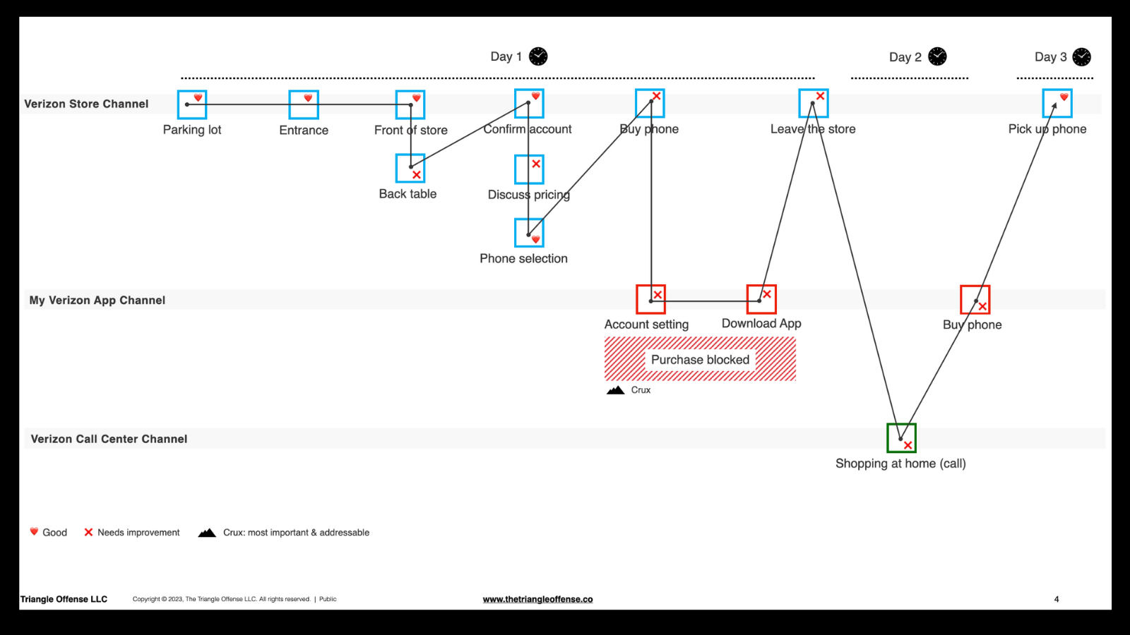 My Verizon experience consisted of three channels: the store, the app, and the call center. (Read up on channels in this post.) I interacted with many touchpoints throughout my three-day ordeal before I finally picked up the phone at the Verizon store.