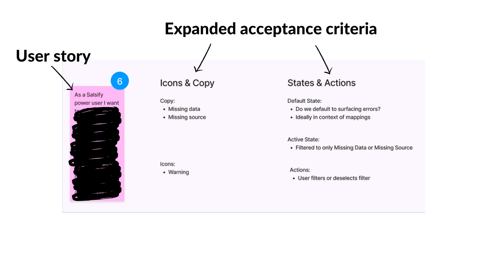 - Rewrite each detail sticky into a user story